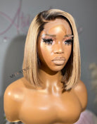 10-12 inches Blonde Side Part Bob Glueless Human Hair Invisible Lace Wig - OPH087