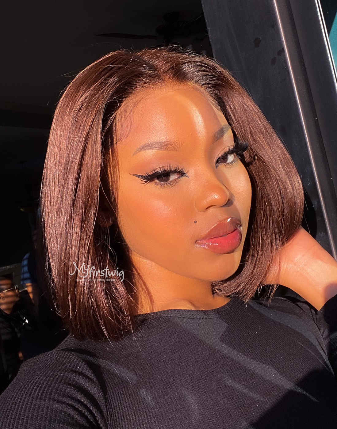 Alicia - Malaysian Hair Blunt Cut Bob Lace Wig - LFB030