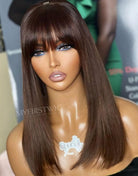 ASPECIALUNIT - Brown Layered Straight With Bangs Lace Front Wig - SPE053