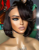 ASPECIALUNIT- Side Part Bob With Bangs Fringe Invisible Lace Glueless Human Hair Wig- SPE088