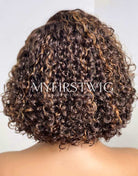 Brown Highlight Short Curly Glueless Human Hair Invisible Lace Wig-APRIL005