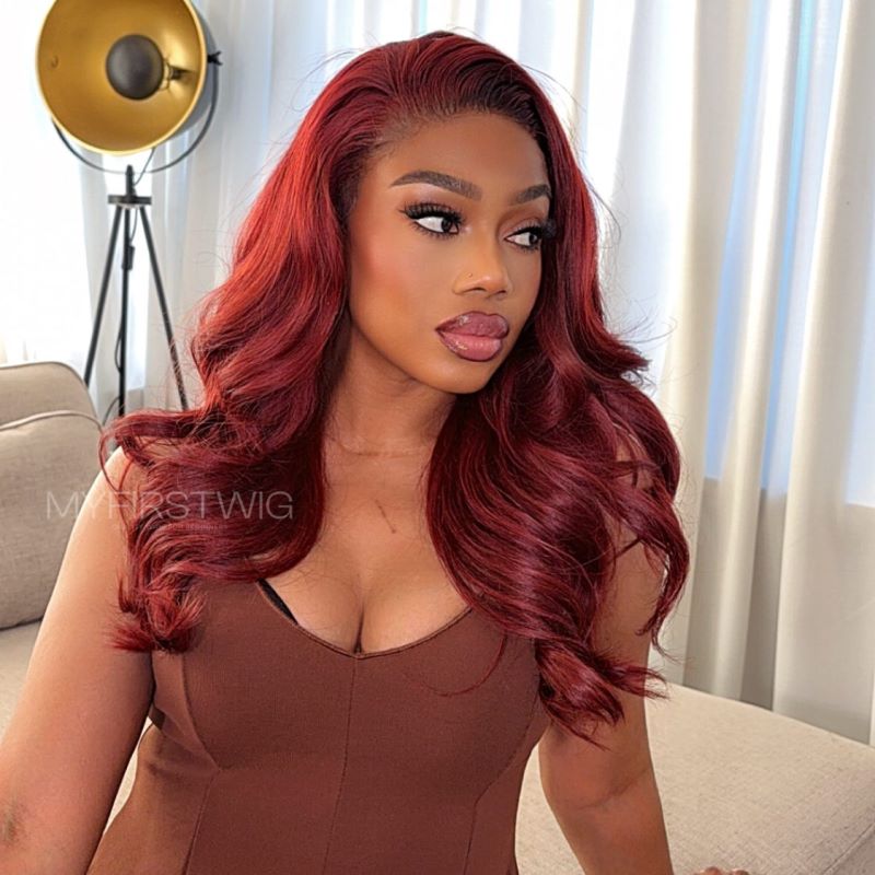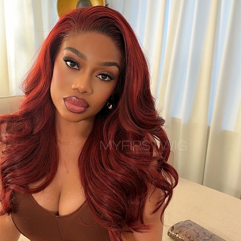 COVERUPBYSELORM - Auburn Side Part Wavy HD Lace 13x6 Human Hair Wig - CBS041