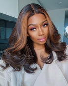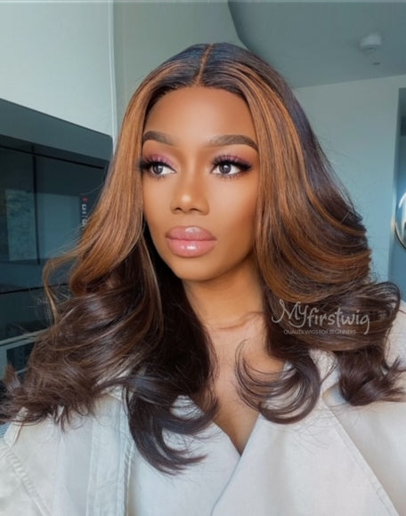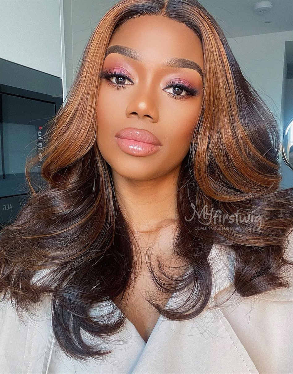 Coverupbyselorm - Human Hair Highlight Chocolate Brown Wavy Lace Front Wig - CBS015