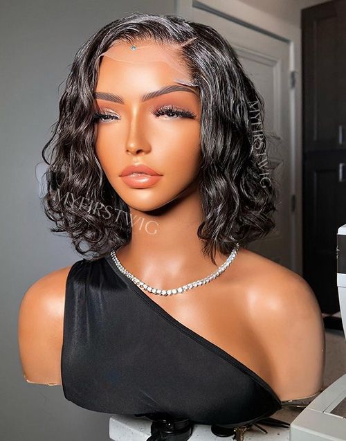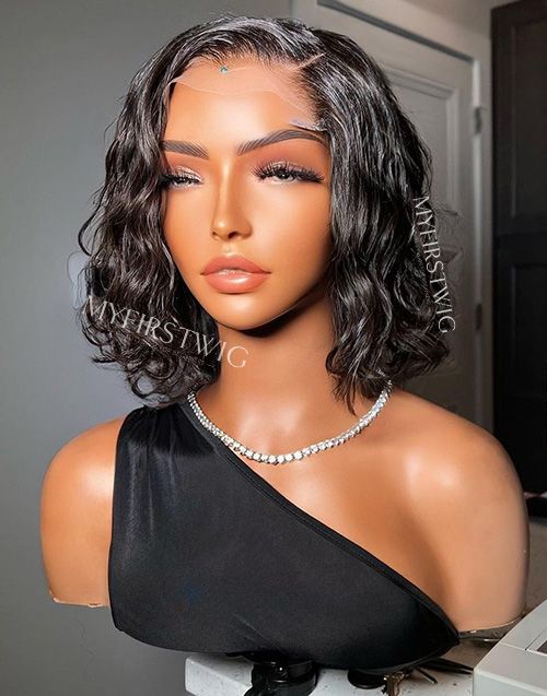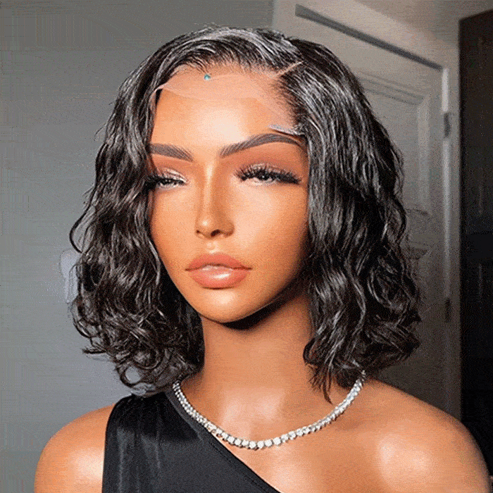 Dainty Secrets - Malaysian Hair Short Water Wave Lace Front Wig - DTS003