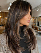Highlight Brown High Level Layers Straight Human Hair Lace Front Wig - JYS002