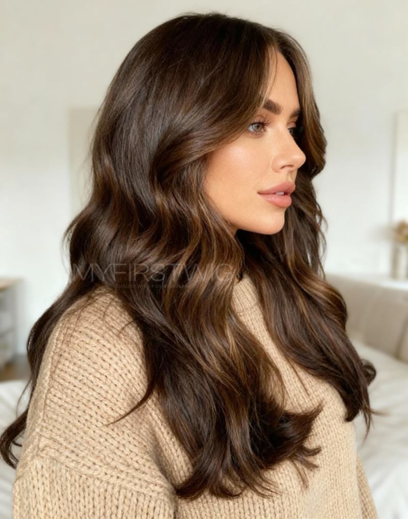 Highlight Brown Wavy Human Hair Lace Front Wig - JYW010