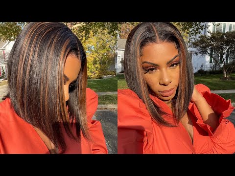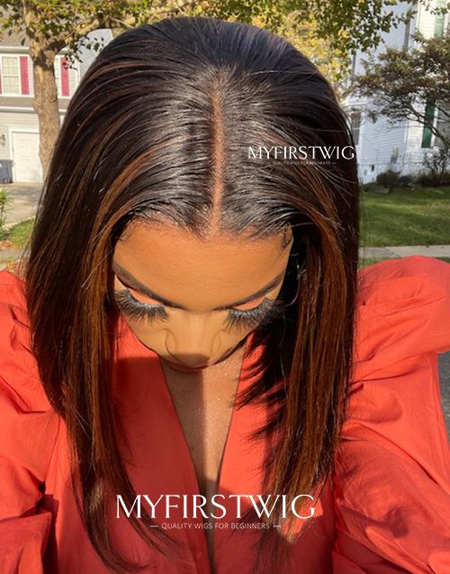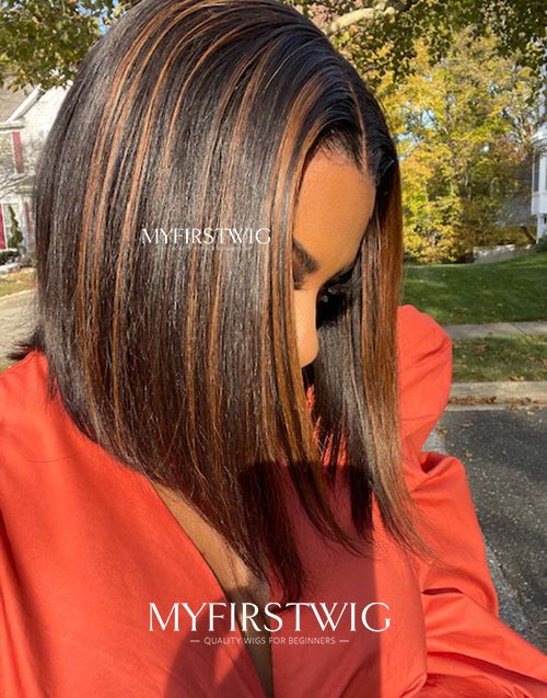 Jada - Malaysian Brown Highlight Hair Bob Lace Front Wig - LFB010