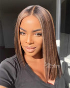 Lilvanilla - Human Hair Highlight Blunt Cut Lace Front Wig - LIL001
