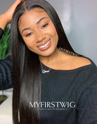 Malaysian Human Hair Yaki Straight Lace Front Wig - YAKI001