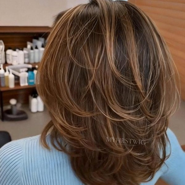 Medium Brown Ombre Yaki Straight With Layers Cut Glueless Human Hair Lace Front Wig - MAI015