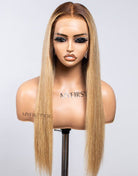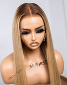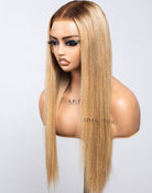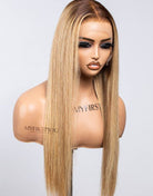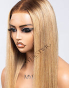 Middle Part Straight Blonde Hair Glueless Human Hair Invisible Lace Wig - July005