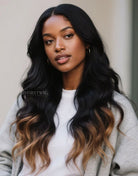 Ombre Blonde Wavy Human Hair Lace Front Wig - MAI004