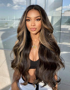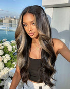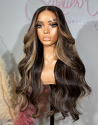 Ophair - Highlight Brown Wavy Glueless Human Hair Lace Front Wig - OPH065