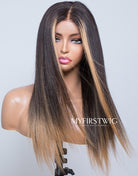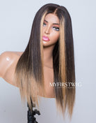 Touchedbyaye - Malaysian Human Hair Blonde Highlight Straight Lace Front Wig - TBA003