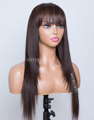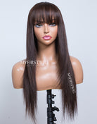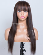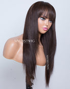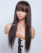 TOUCHEDBYAYE - MALAYSIAN HUMAN HAIR DARK BROWN LAYERED STRAIGHT WITH BANGS LACE FRONT WIG - TBA004