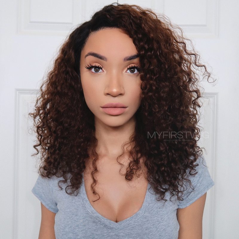 Wig For Hair Loss - Ombre Brown Curly Human Hair Wig - WHLC001