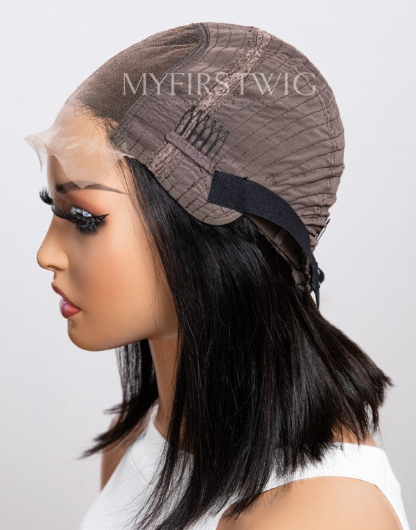 ● All the wigs from Myfirstwig are glueless wigs. The cap perfectly accommodates the shape of a real human head, guaranteeing a comfortable and natural fit. Internal combs and elastic bands inside eliminate the need for wig glue installation.