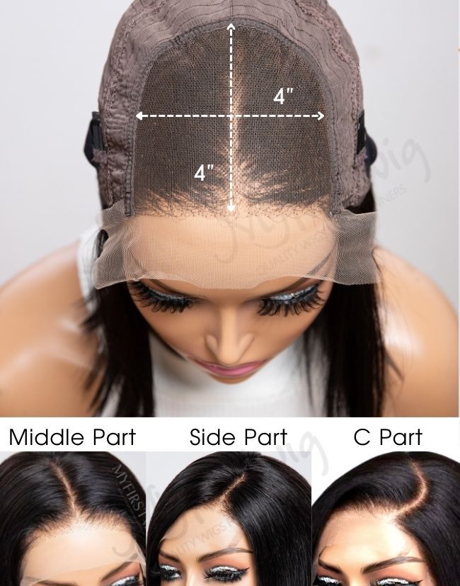 ● 4x4 Closure Wig: It features a closure piece that is 4×4 inches in size. This means that the closure covers a smaller area at the crown, typically used for middle part or side part hairstyles. The closure is made of lace and is applied to the front section of the wig cap to give a natural and seamless hairline.
