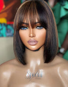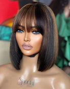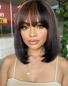 10-12 Inch Brown Highlight Bob with Bangs Fringe 5x5 Wear Go Glueless Human Hair Wigs - BFB018