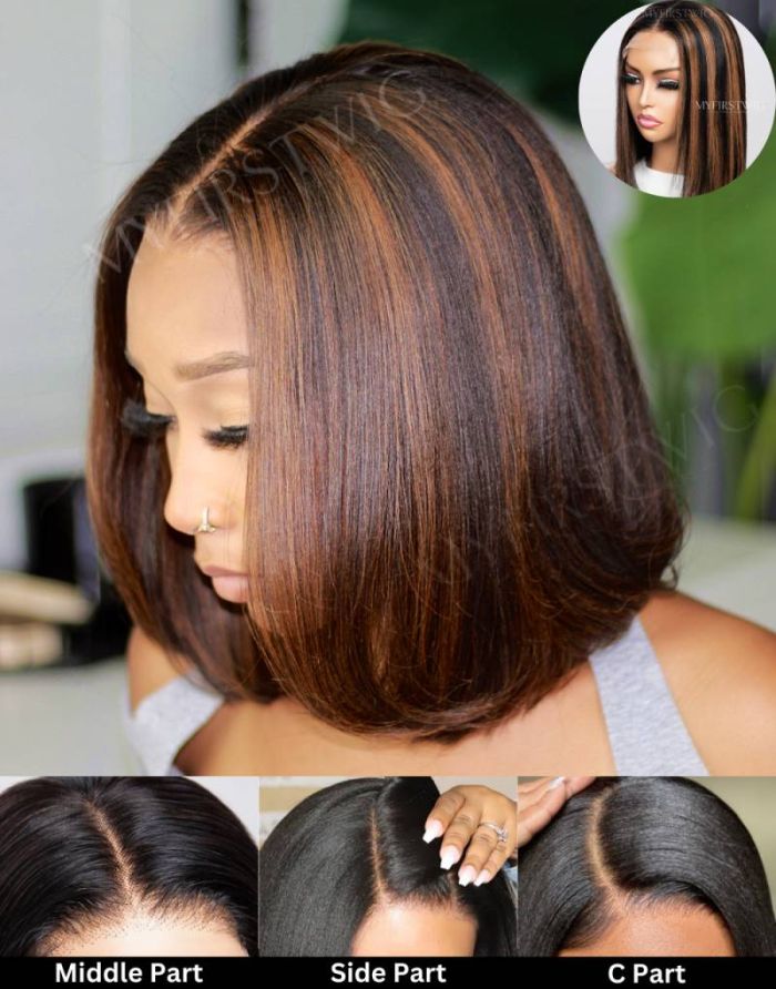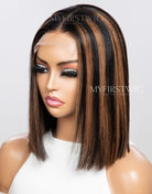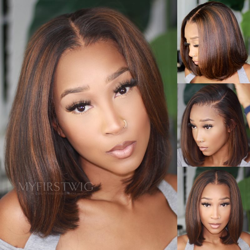 10-12 Inch Highlight Brown Bob 5x5 Wear Go Glueless Human Hair Wigs - BFB003