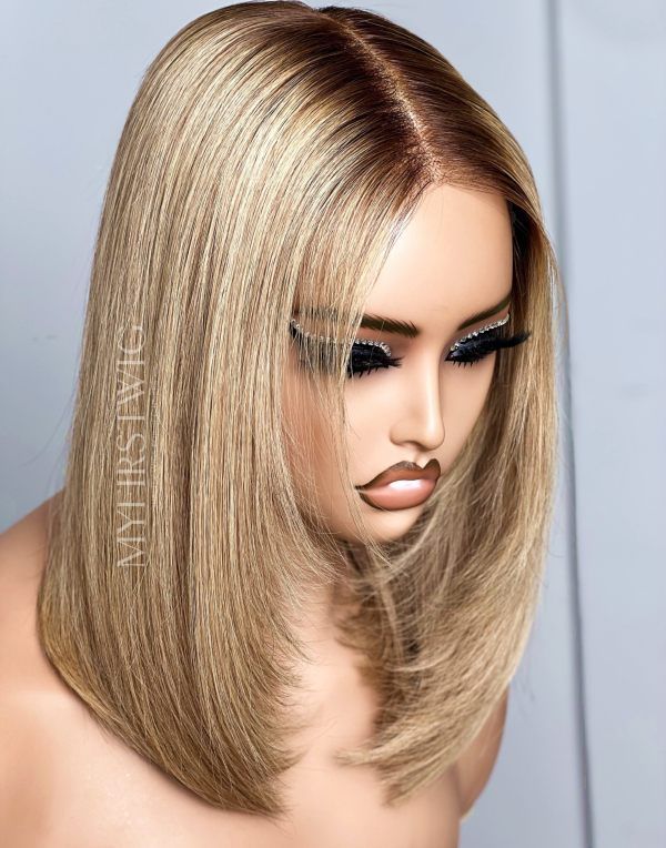 14-20 Inch Ombre Blonde with Layers 5x5 Wear Go Glueless Human Hair Wigs - BFS029