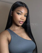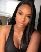 14-20 Inch - Glueless Long Black Human Hair Straight Invisible Lace Front Wig Alexis - LFW016