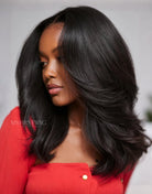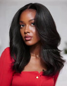 Yaki Wavy With Flay Layers Human Hair Lace Front Wig - MAI007