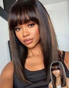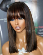 ASPECIALUNIT - Brown Highlight With Bangs Bob Lace Front Wig - SPE042