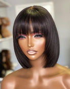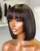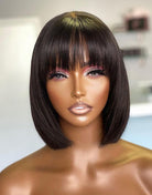 Hair Inspiration - Glueless Malaysian Human Hair Short Bob Haircut With Bangs Lace Front Wig - INS001