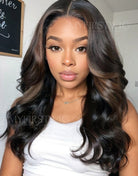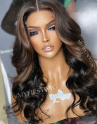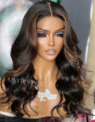 Aspecialunit-Malaysian Hair Brown Highlight Wavy Glueless Lace Front Wig - SPE007