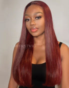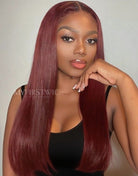14-20 Inch Burgundy Straight 5x5 Wear Go Glueless Human Hair Wigs - JYS001