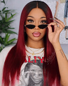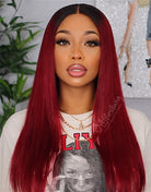Aliyah - Human Hair Ombre Burgundy Lace Front Wig - LFW055
