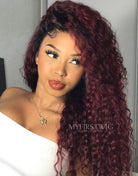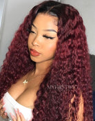 MALAYSIAN HUMAN HAIR DEEP WAVE BURGUNDY CURLY HAIR GLUELESS LACE FRONT WIG - LFC024