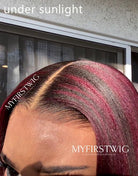 Glueless Malaysian Human Hair Yaki Straight With Burgundy Highlight Lace Front Wig - YAKI010