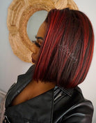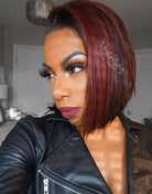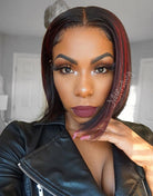 Symone - Human Hair Burgundy Highlight Short Bob Lace Front Wig - LFB028
