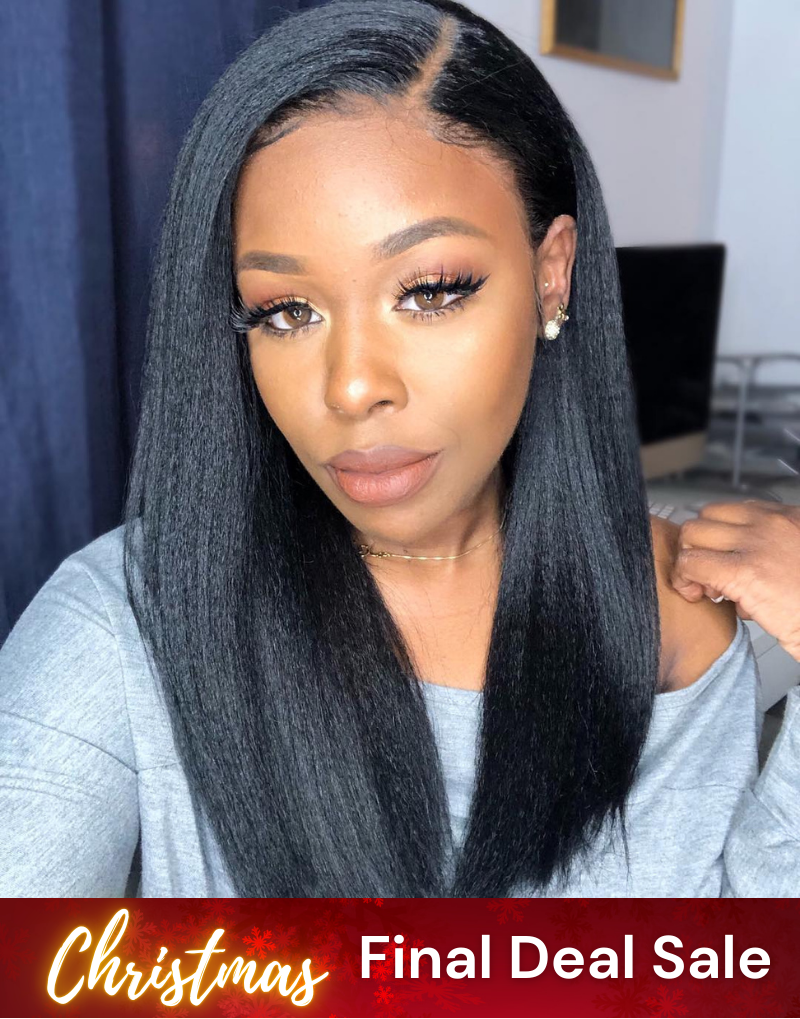 Dominique - 16" Kinky Straight Human Hair 13x6 Lace Front Wig - LFK001FD