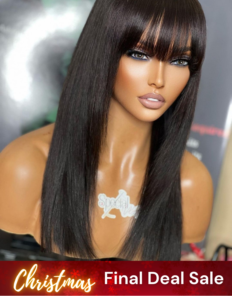 Layered Straight With Bangs 13x6 Drawstring Lace Front Wig - SPE048FD