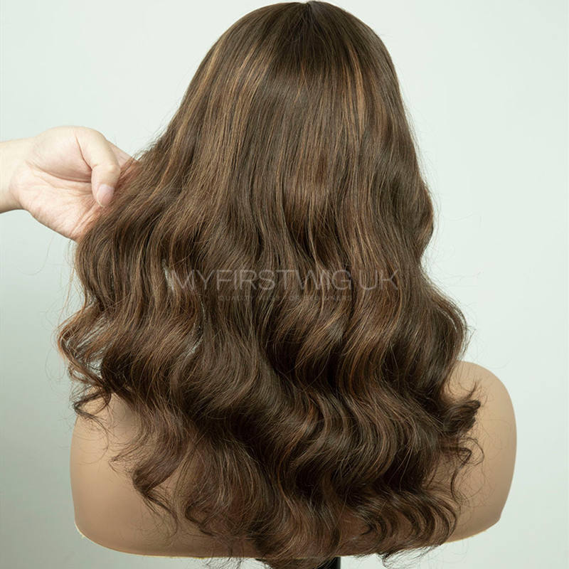 Wig For Hair Loss - Brown Highlight 9x9" Topper Silk Base/ Mono/ Swiss Lace Topper Human Hair Wig - WHLT003