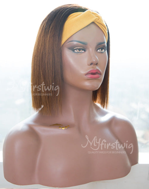 MONIQUE- HUMAN HAIR BROWN BOB HEADBAND WIG - HBW017