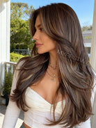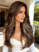 Wig For Hair Loss - Ash Brown Balayage Highlight Long Layered Blowout Human Hair Wig - WHLS007