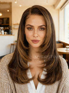 Wig For Hair Loss - Brown With Caramel Highlight Layers Straight Human Hair Wig - WHLS005