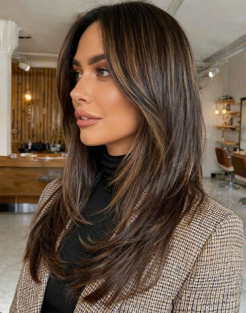 Wig For Hair Loss - Highlight Brown Layers Straight Human Hair Wig - WHLS002