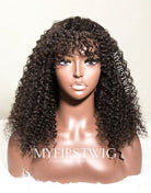 Malaysian Human Hair Curly Lace Front Wig With Bangs - LFC017