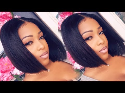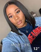Malaysian Human Hair Middle Part Yaki Bob Haircuts Lace Front Wig - YAKI002