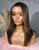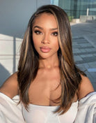 OpHair - Glueless Human Hair Lace Front Wigs Brown Highlight Straight Hair - OPH070