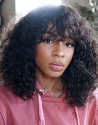 VICTORIA - MALAYSIAN HUMAN HAIR SHORT CURLY WITH BANGS LACE FRONT WIG - LFC009