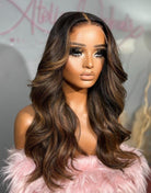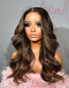 OpHair - Brown Highlight Wavy Human Hair Glueless Invisible Lace Front Wig - OPH092