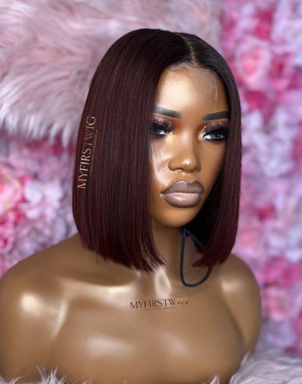 OpHair - Human Hair Burgundy Blunt Cut Bob Glueless Lace Front Wig - OPH089