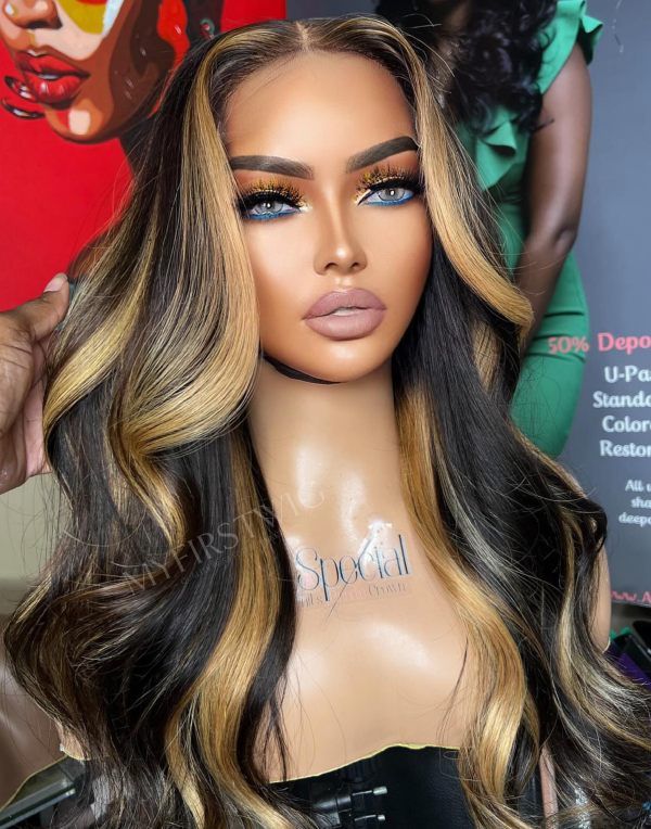 Aspecialunit - Blonde Wavy Glueless Human Hair Lace Front Wig - SPE099