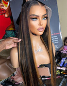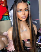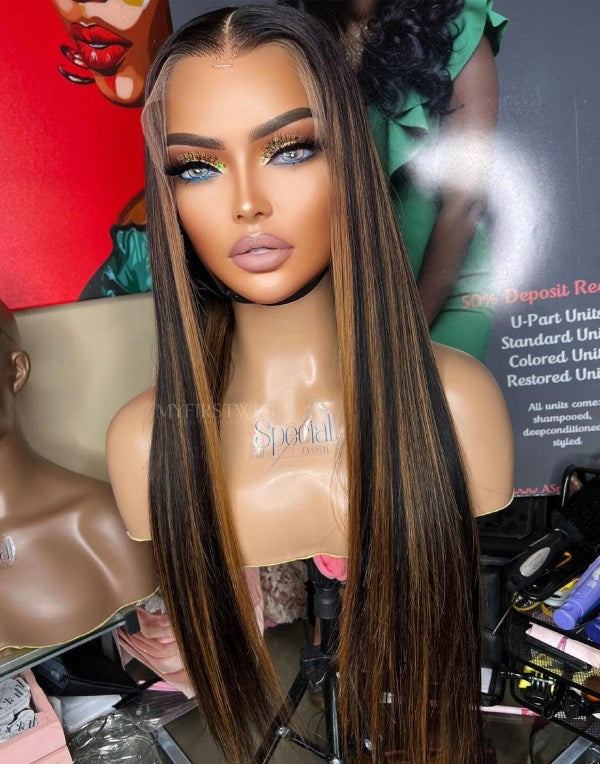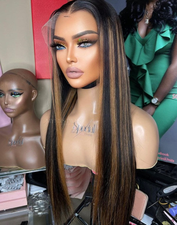 ASPECIALUNIT - Glueless Human Hair Lace Front Wigs Brown Highlight Straight Wigs - SPE075